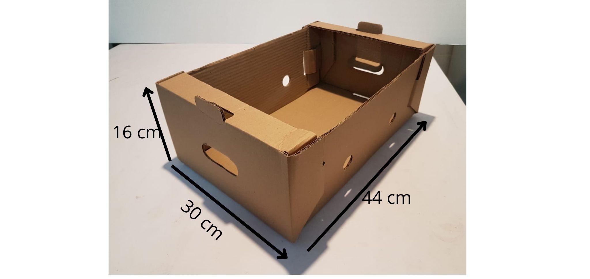 Caixa de Papelão Pardo para transporte de frutas, verduras e legumes, suporta 4,5 kg, sendo onda dupla de 600gr e coluna 6,5