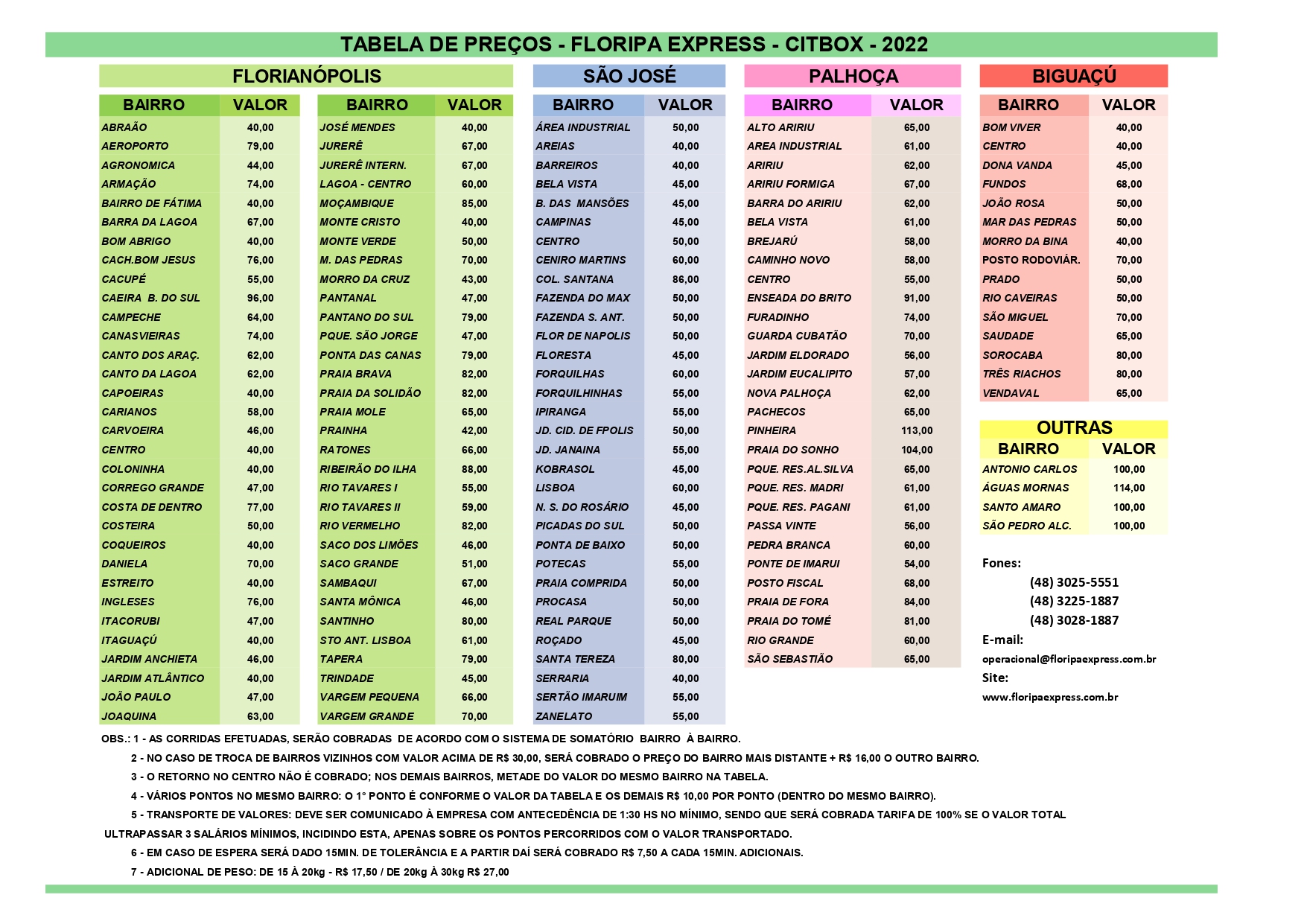 Tabela do Motoboy